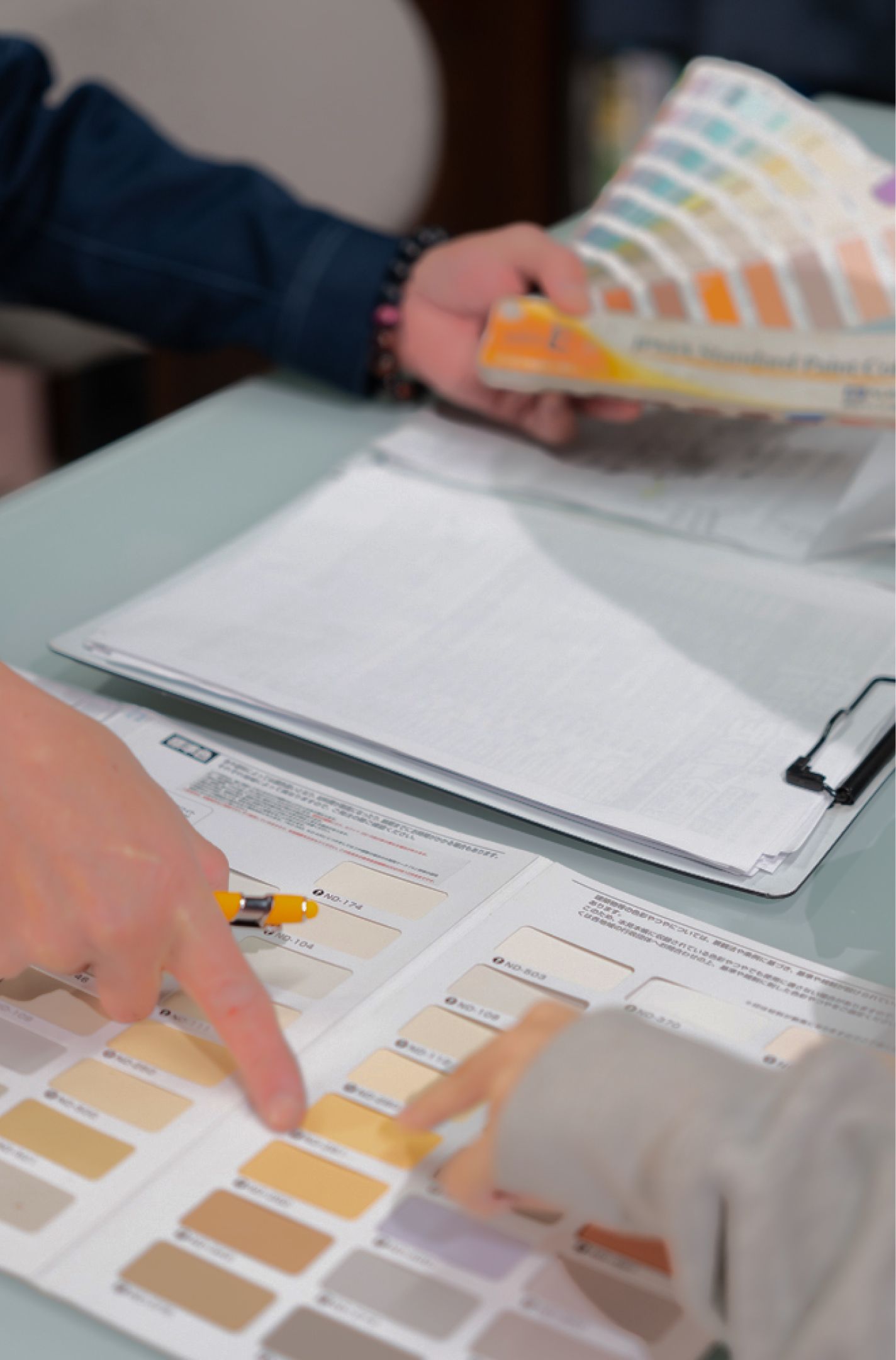 お見積り内容にご納得いただきましたら、契約書にご署名をいただき、ご成約となります。ご成約後に工事内容・使用材料の最終確認をして工事日程の打ち合わせをいたします。