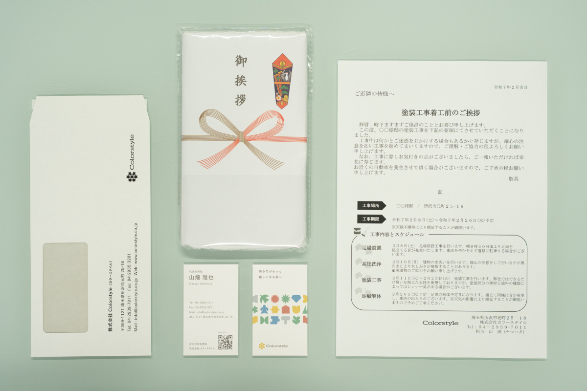 ご近所様へのご挨拶は弊社がおこないますので、ご安心ください(工事開始の1週間から10日前頃)。