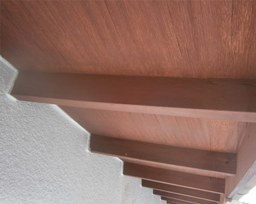 チョーキングとは、塗料を薄めて塗装することで出やすくなりますので現在チョーキングしているところなど高圧洗浄でできるだけ洗い流します。後は、塗料を必要最低限の希釈量に保ち塗装しました。また、クラックに関しては深さと幅により対処法を変えてコーキングの跡が目立たない工法で行いました。木部に関しては、素地仕上げの部分はアク洗いをして汚れを綺麗に落として防腐剤を塗装して木の風合いを活かした仕上げをしました。